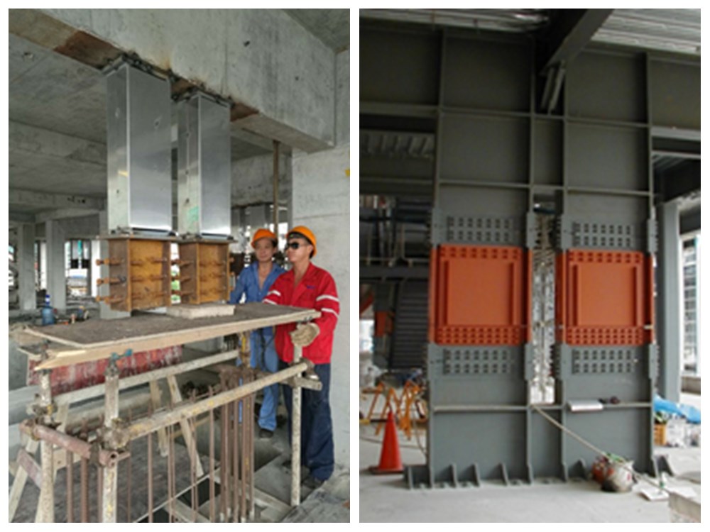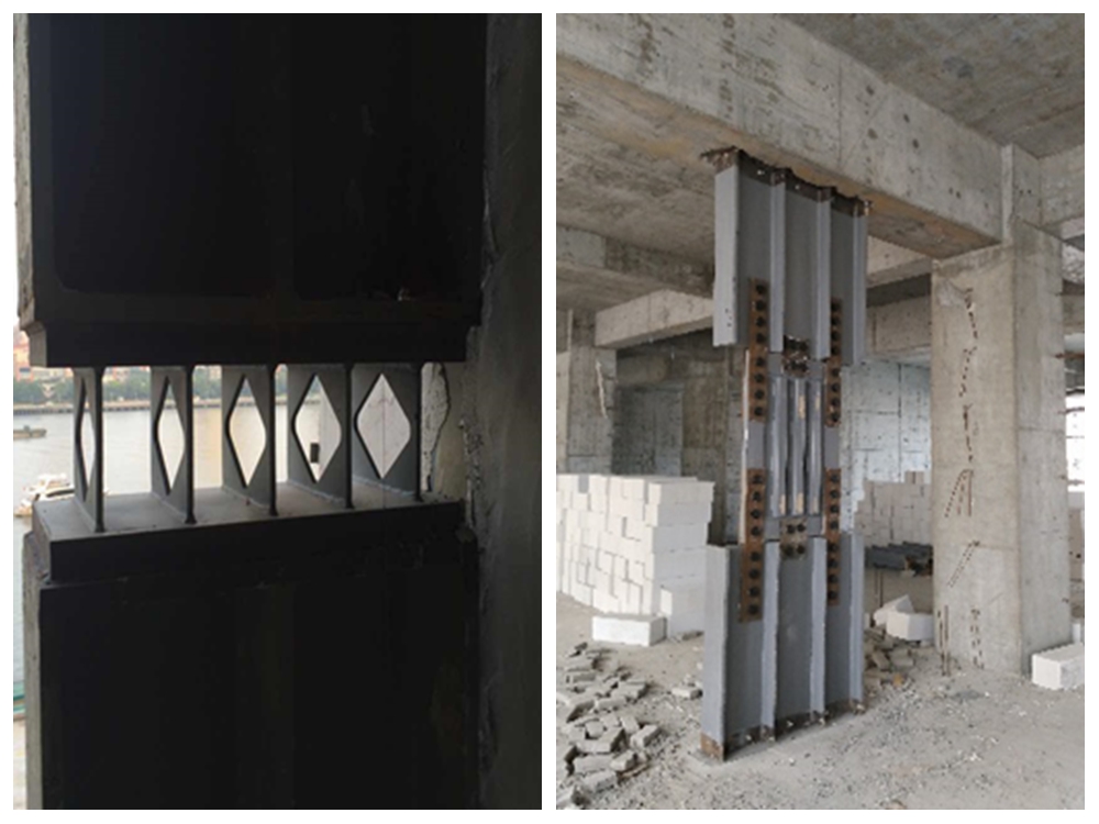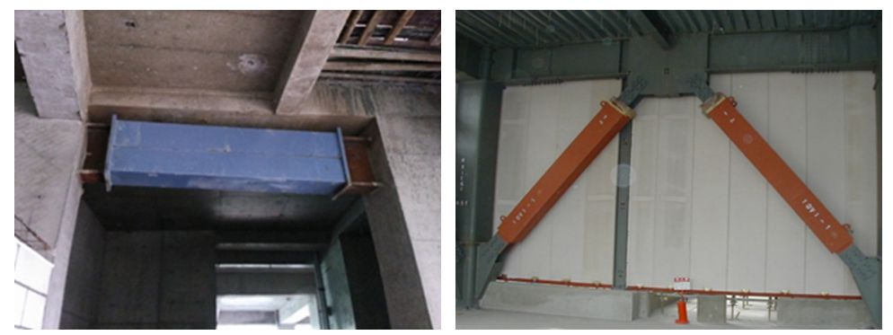 (1)剪切型阻尼器,寧波楊柳郡住宅 (2)粘彈性阻尼器,臺灣某辦公樓